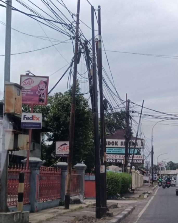 KOTA TANGERANG| Tiang internet adalah sebuah tiang yang menopang kabel jaringan utilitas, seperti jaringan telepon, fiber optik, telekomunikasi,dan lain sebagainya. Tak jarang, pemasangan nya jadi tidak tertata.