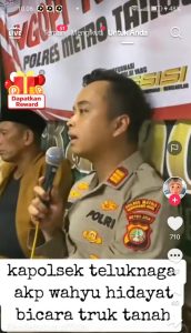 Ibu-ibu minta pada APH agar tangkat truk yang melintasi di jalan Desa Pangkalan sampai Tanjung Pasir, Teluknaga.
