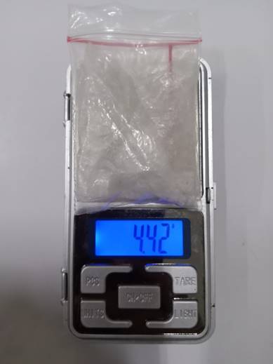 “Ditemukan barang bukti berupa 1 paket plastik berisikan 1 bungkus kristal warna putih yang diduga narkoba jenis Sabu dengan berat Bruto kurang lebih 4,42 gram, 1 buah Hp merek Infinix, 1 buah timbangan elektrik warna putih serta 1 buaj tas slempang warna hitam,” ucapnya.