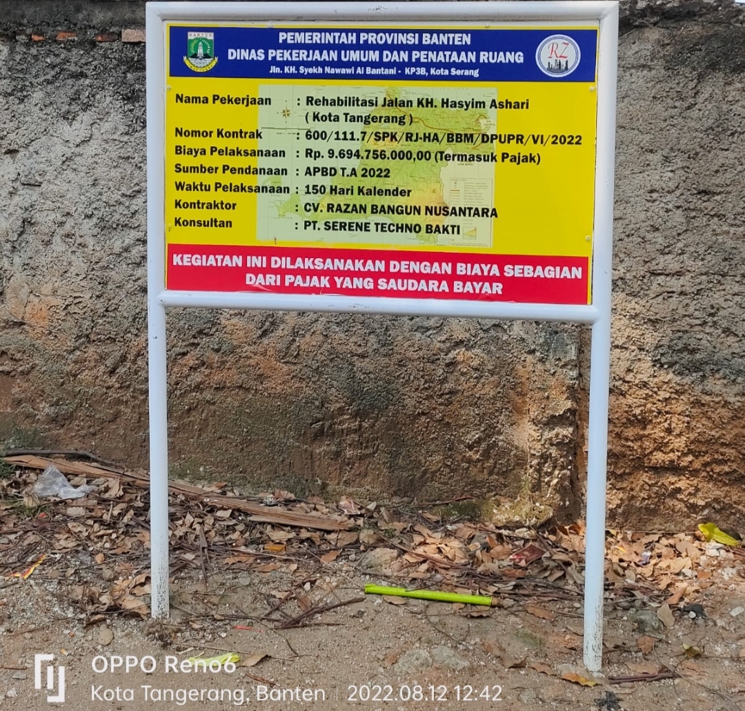 TANGERANG-BANTEN| Proyek rehabilitasi Jalan K.H Hasyim Ashari Kota Tangerang kini menjadi sorotan, baik di kalangan Aktivis dimasyarakat Badan Penelitian Aset Negara Republik Indonesia (BPAN RI ) Kota Tangerang ‘H.Muhdi’, bahkan kini menjadi perhatian Ombudsman RI ‘Yeka Hendra Fatika’ ikut angkat bicara dan mengingatkan Dinas sebagai owner dalam proyek tersebut.