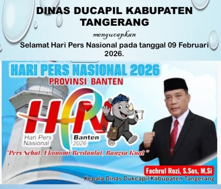 Dinas Dukcapil Kabupaten Tangerang mengucapkan Selamat Hari Pers Nasional pada tanggal 09 Februari 2026.